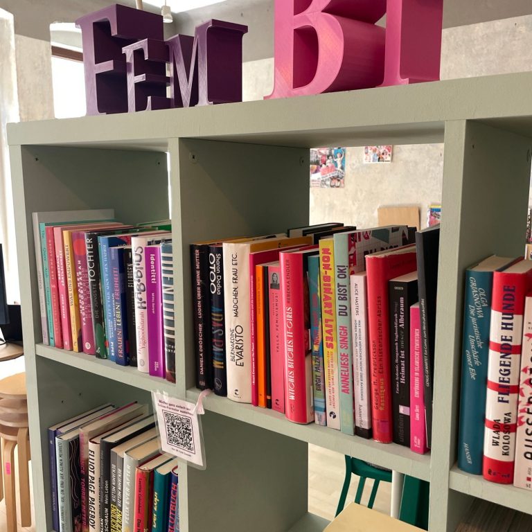 Unsere feministische Bibliothek (fem.Bib) ist offen für alle, die neugierig sind und Perspektiven auf queeres Leben, Sexualität und Erwachsenwerden entdecken wollen.